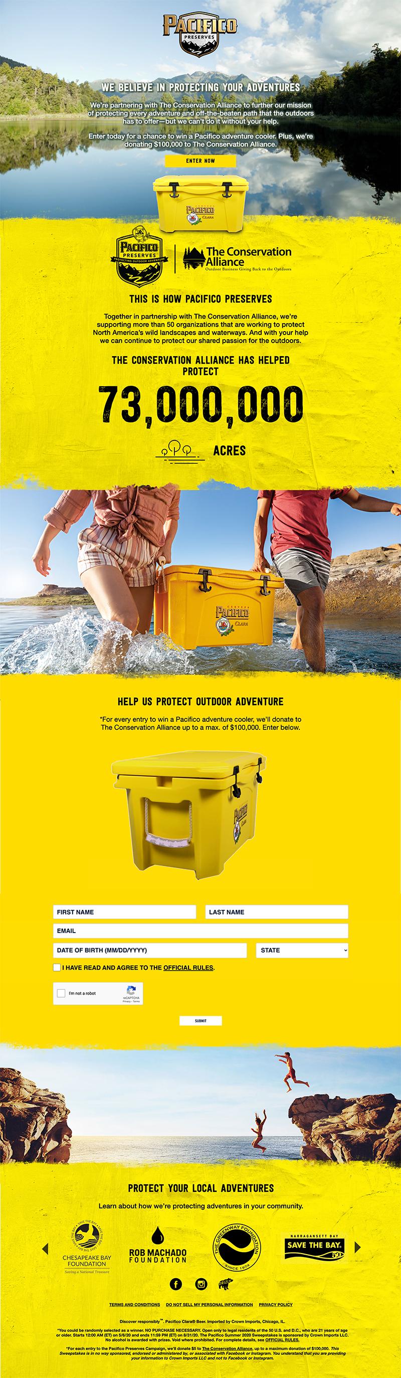 Pacifico Preserves is an initiative from Pacifico Beer to protect the outdoors and advocate for better access to adventure for all. I developed copy for their microsite, national sweepstakes, and social media.